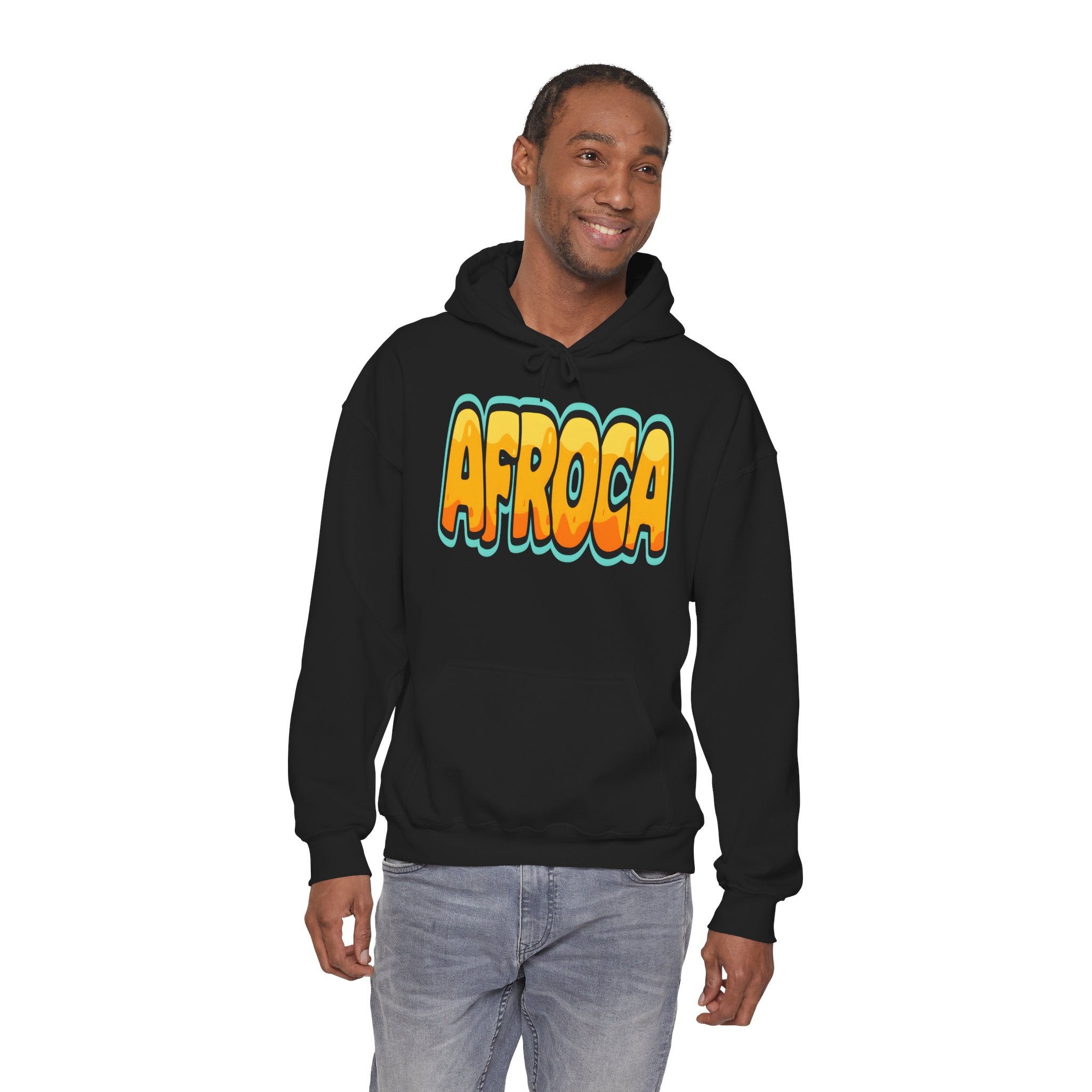 Afroca Retro Bubble Letter Hoodie — Bold Yellow Graphic Sweatshirt